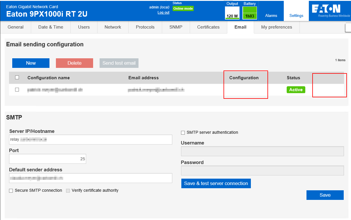 Bin gerade dabei, eine solche UPS zu konfigurieren. Bei den Mail-Benachrichtigungen zeigt das GUI (zumindest unter IE) seine Schwächen: